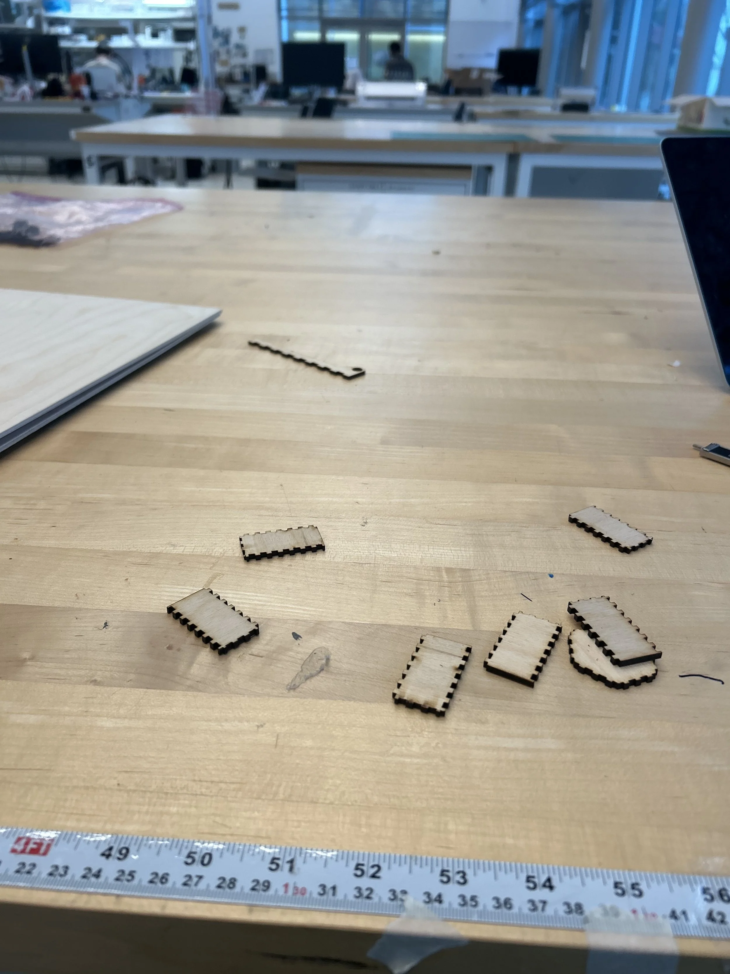 in this project I learned how to get better in using the laser cutter, and how to do finger joints. I am still experimenting with finger joints because I really want to use them for future designs. I was able to understand what a kerf was and why it is important to take it into consideration.