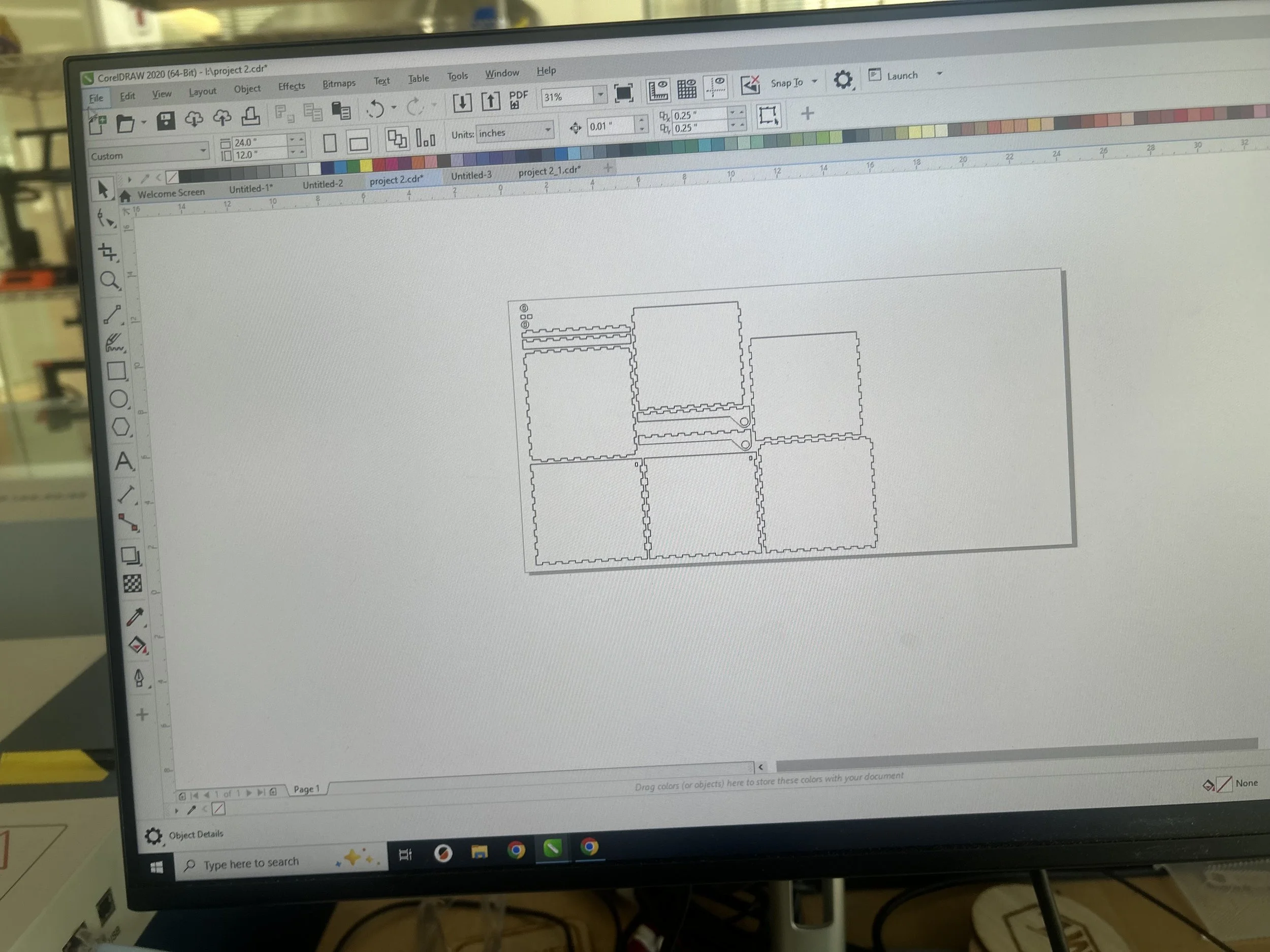 I decided to use a template of a box with finger joints and a hinge lid to see if I could get it to lock everything in place. I chose a 6 inch width, height, and depth. I sent my file to inscape and sized it to the way I wanted it to be.