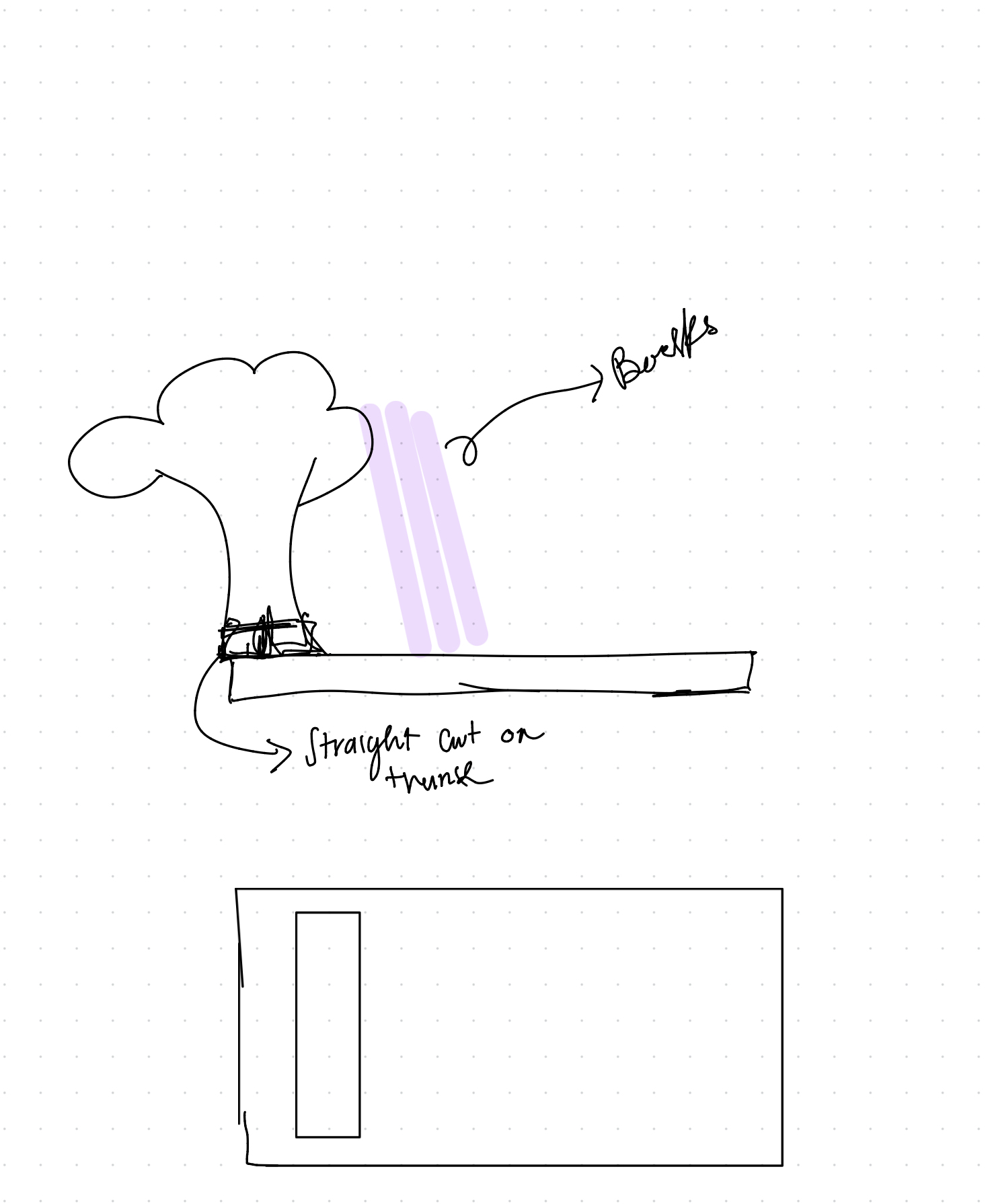 my design was going to compose of a rectangular piece with a cut rectangle close to the edge so that my tree could interlock in the cut. after this, I decided to incorporate a rectangular base for my tree so that it could fit better.