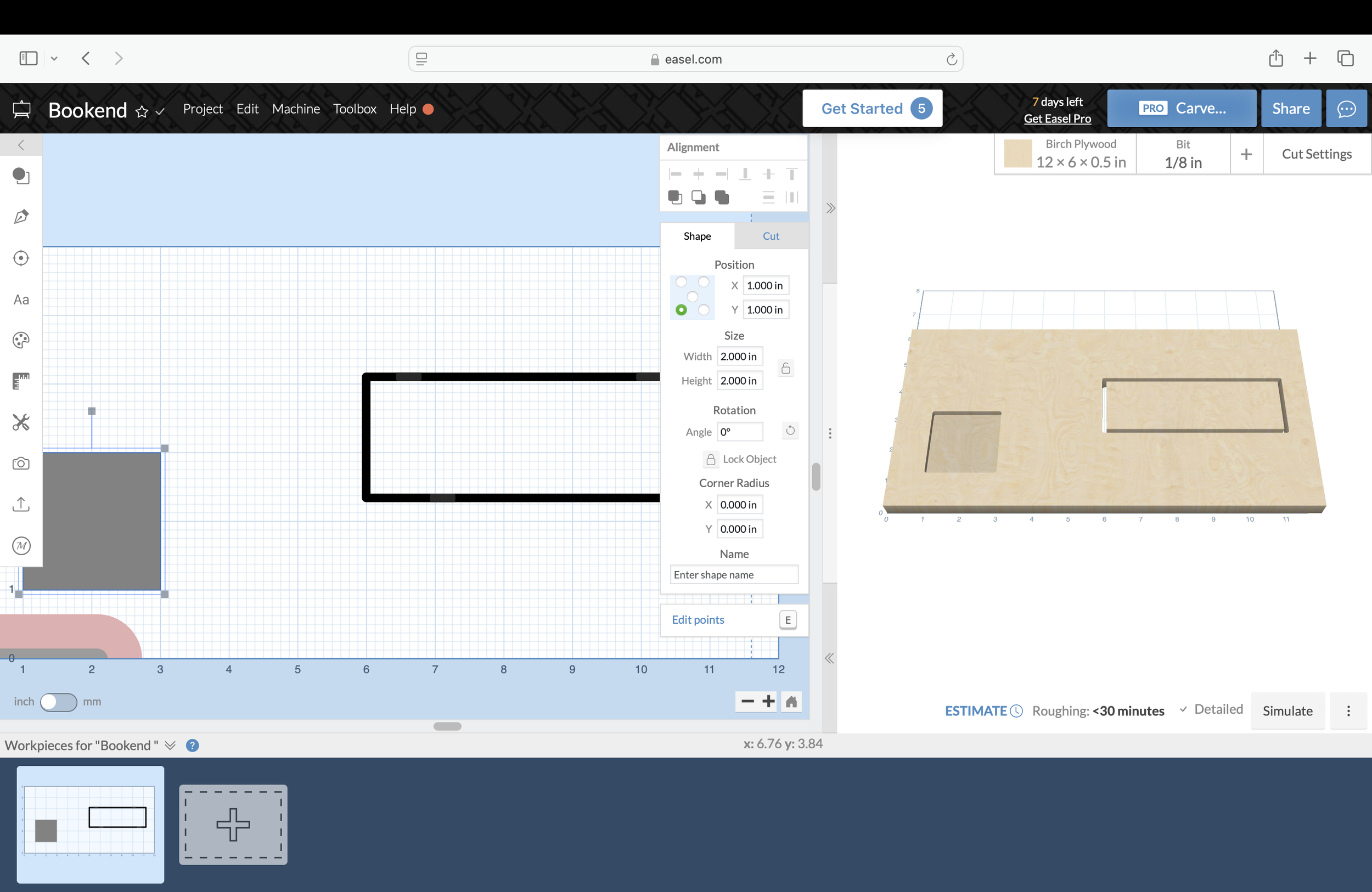 I started translating my design to easel and used the rectangle there to make my base.