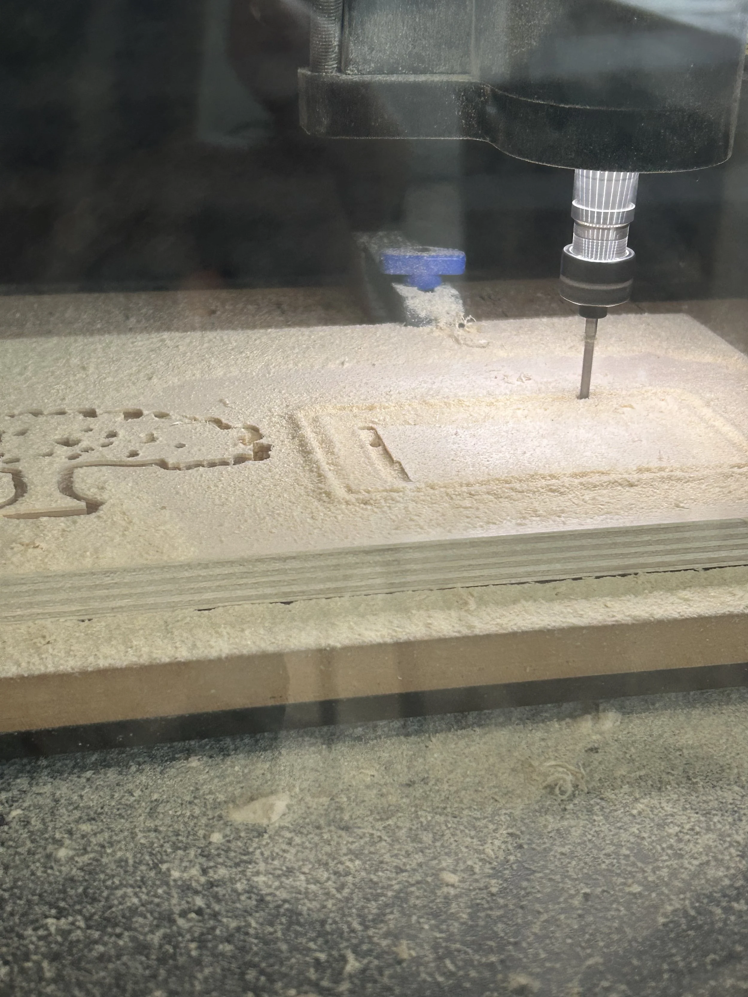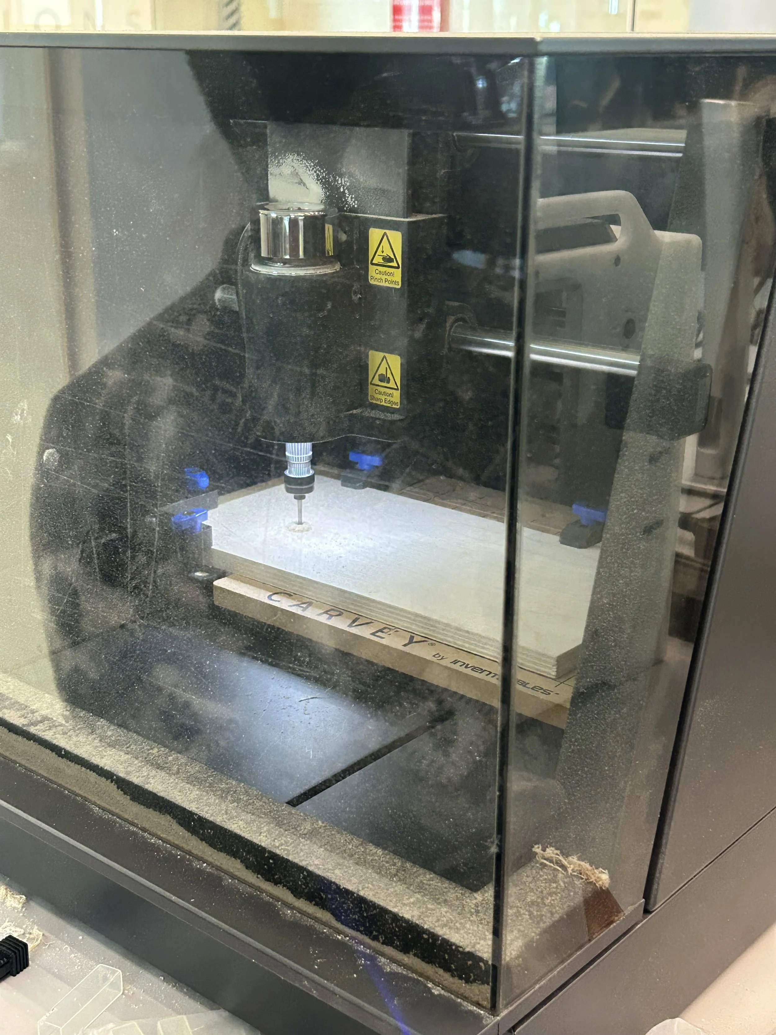 I tried again the following day with the new bit and the TA also saved my work and left the set up exactly how it was before so that I could just arrive and send it to the carvey again. however, the carvey cut my design a bit bad and with that I mean that for the interlocking part, it cut a random piece outside of that rectangular cut which affected my whole design.